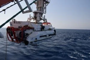 MEDITERRANEAN SEA (Sept. 20, 2017) The NATO Submarine Rescue System (NSRS) submarine Nemo is launched from the deck of SD Northern River as part of NATO submarine escape and rescue exercise Dynamic Monarch 2017 while off the coast of Marmaris, Turkey. The NSRS mini submarine can dive to depths of 600 meters and connect to the escape hatch on a submarine in order to rescue sailors inside a distressed submarine. NATO photo by Denver Applehans/Released.